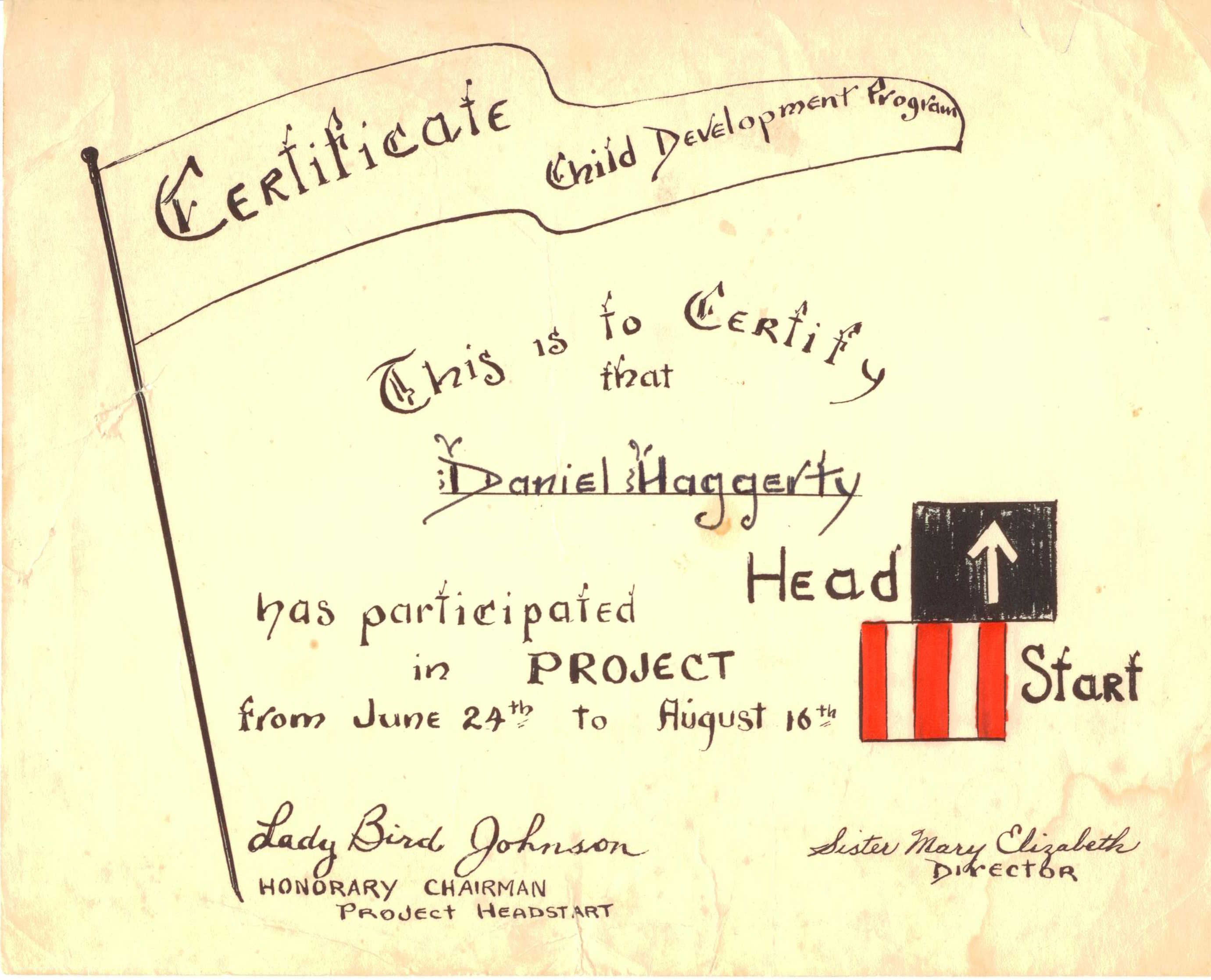 “I was very proud of the graduation cap and certificate. I took them with me when we later moved back to Iowa. I still have the certificate, which has Lady Bird Johnson’s signature imprinted.”